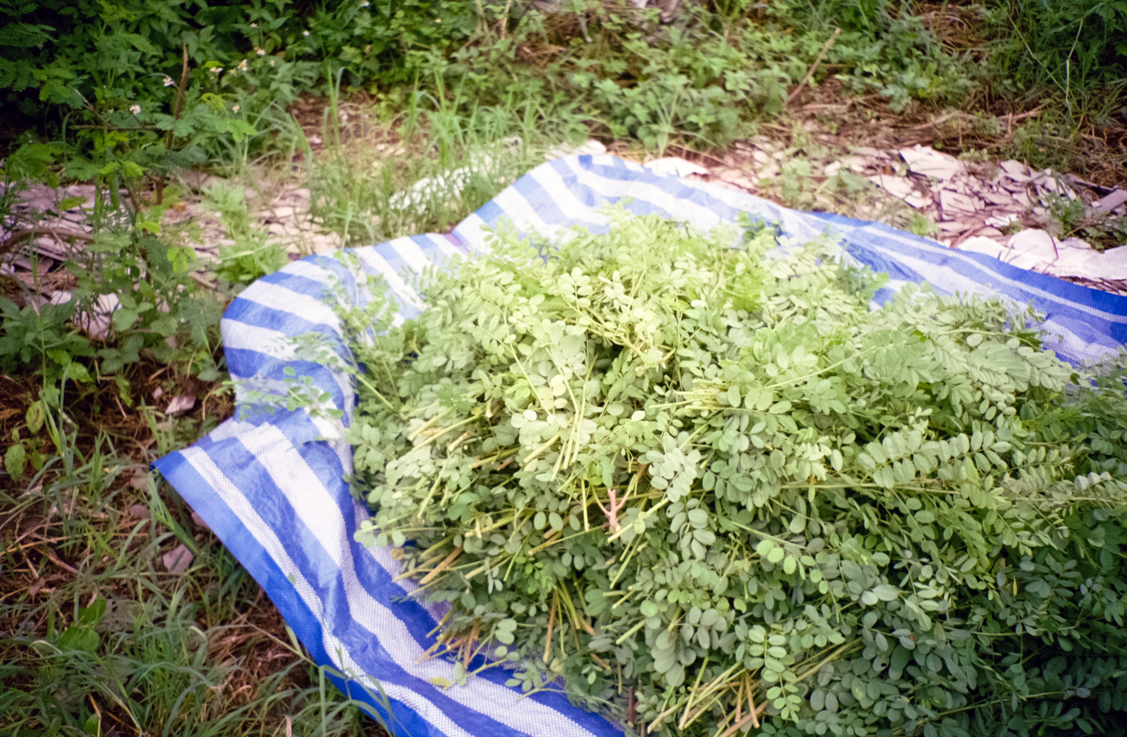 I harvest indigo in a field out the back of a Baptist mission with some of the women. We sit on a tarp and pick the leaves from the stem and they teach me how to activate the colour with a bowl and some lye. The liquid turns from blue to indigo and it is easy to see how it was once a symbol of wealth and status. It shimmers.